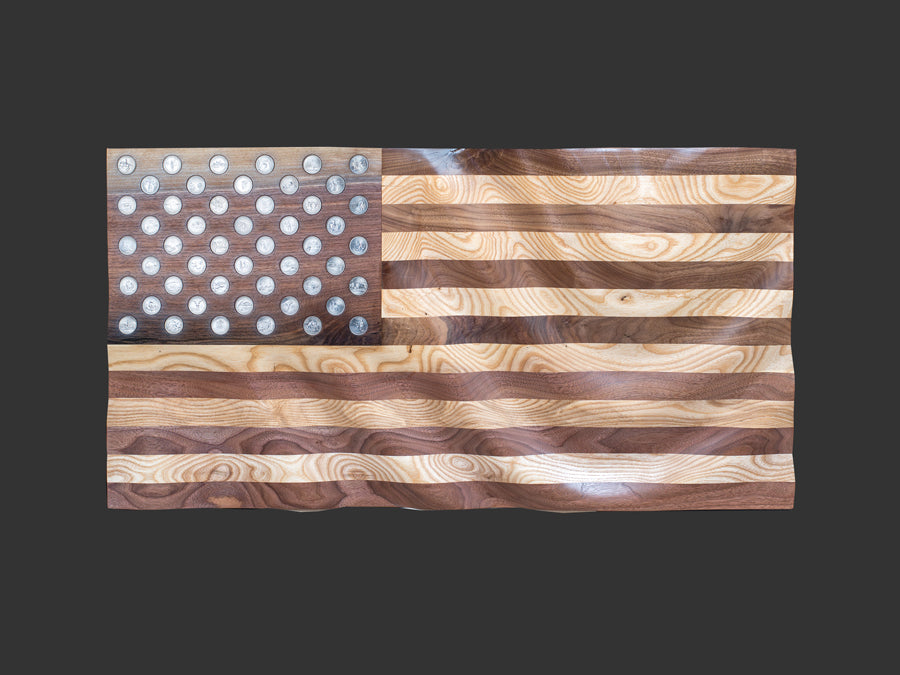 The 50 State Quarter Wooden Flag comes standard with walnut and maple stripes with walnut union. If you want different wood combinations, with additional charge, please email or call.